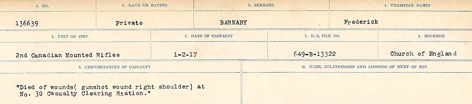 Digital gallery of Private Frederick Barnaby