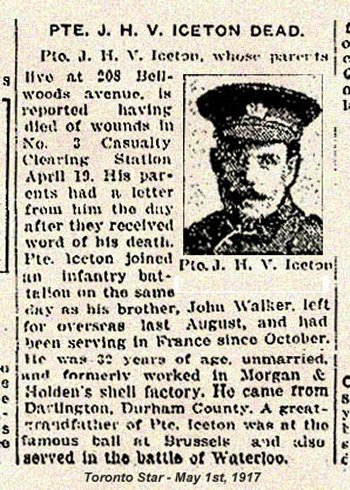 Son of James Walker Iceton and Theresa Mary Iceton, of Toronto. Late of Darlington, England.