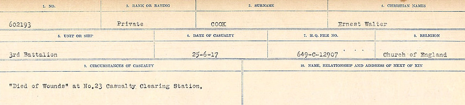 Digital gallery of Private Ernest Walter Cook