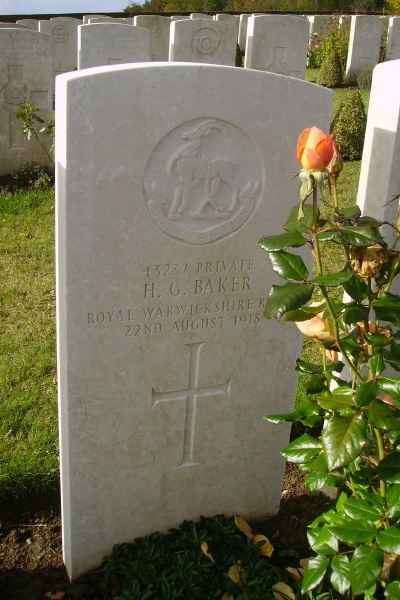 Gezaincourt is a village in the Department of the Somme, situated 2 kilometres to the south-west of the town of Doullens, and BAGNEUX BRITISH CEMETERY lies to the south of the village. There is a Commonwealth War Graves Commission signpost in Gezaincourt village opposite the Chateau entrance.