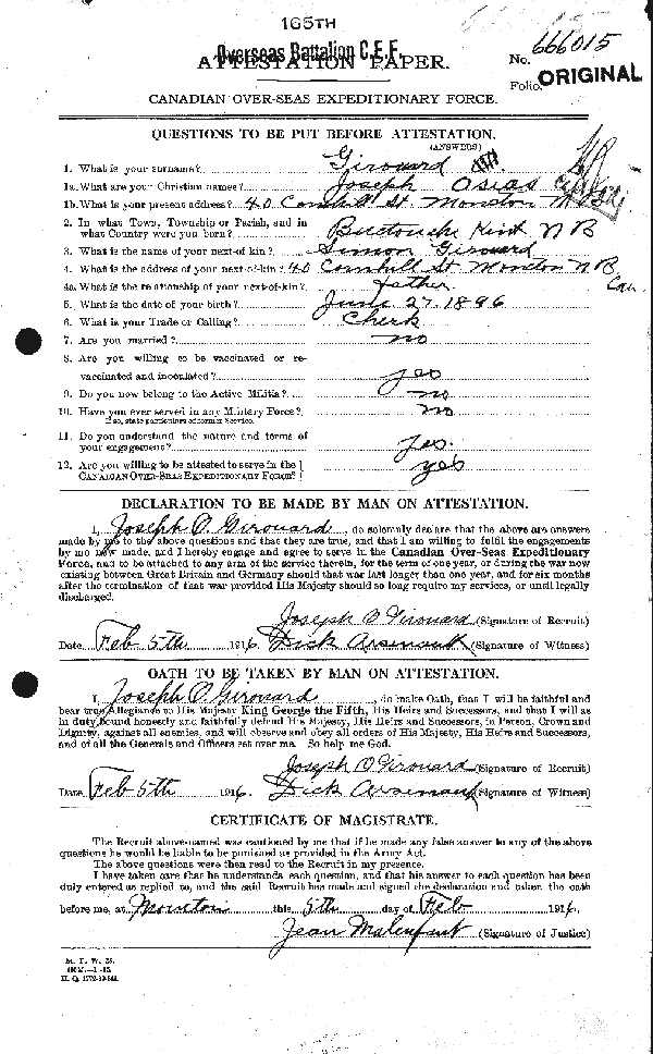 Digital gallery of Private Joseph Osias Girouard