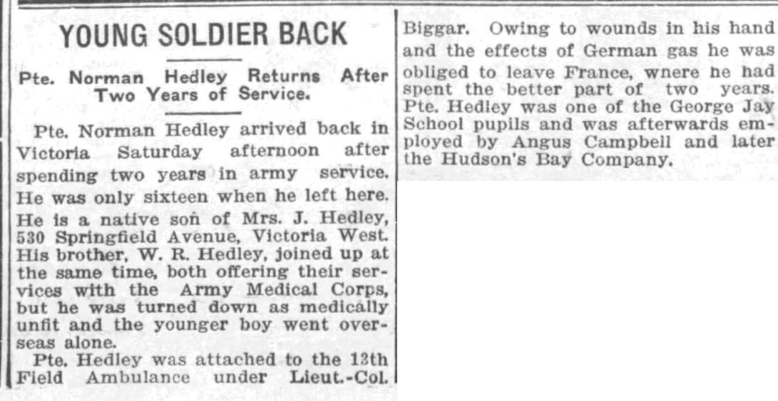 Enlistment: August 13, 1915 Vernon, British Columbia