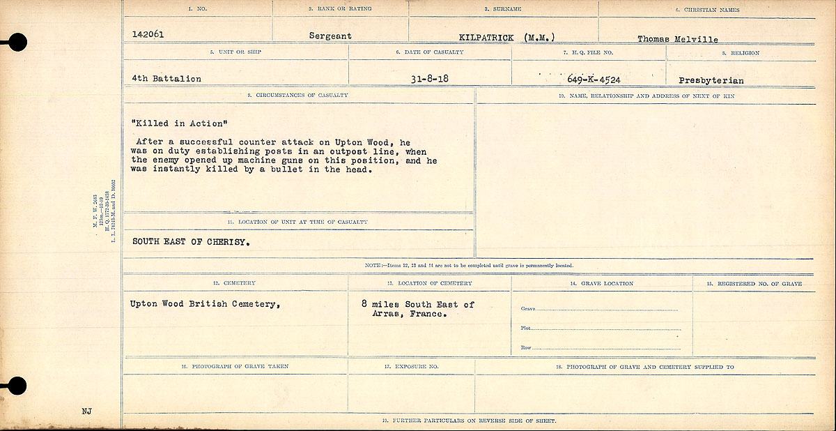 Digital gallery of Sergeant Thomas Melville Kilpatrick