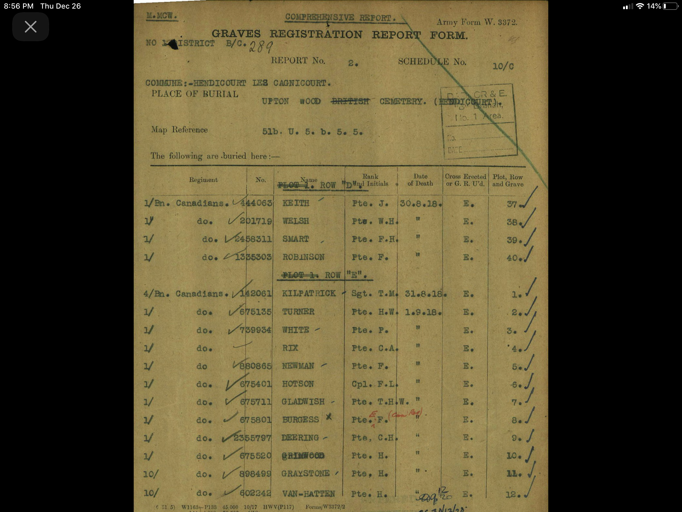 Hendecourt-les-Cagnicourt is a village in the Department of the Pas-de-Calais about 16 kilometres south-east of Arras and about 4 kilometres south of the Arras to Cambrai main road. Upton Wood is a small wood half-way between Hendecourt and Haucourt and UPTON WOOD CEMETERY is 110 metres south of the wood and about 2 kilometres north of the village.