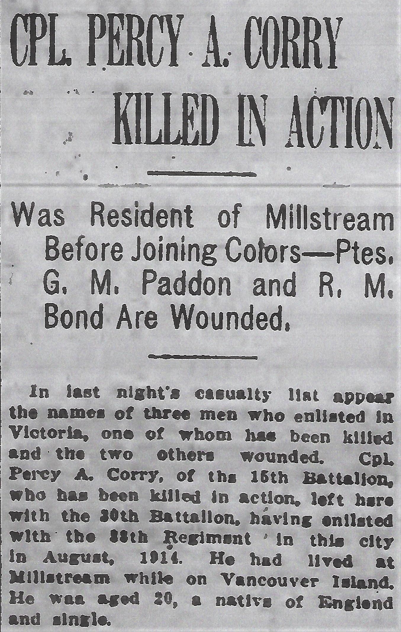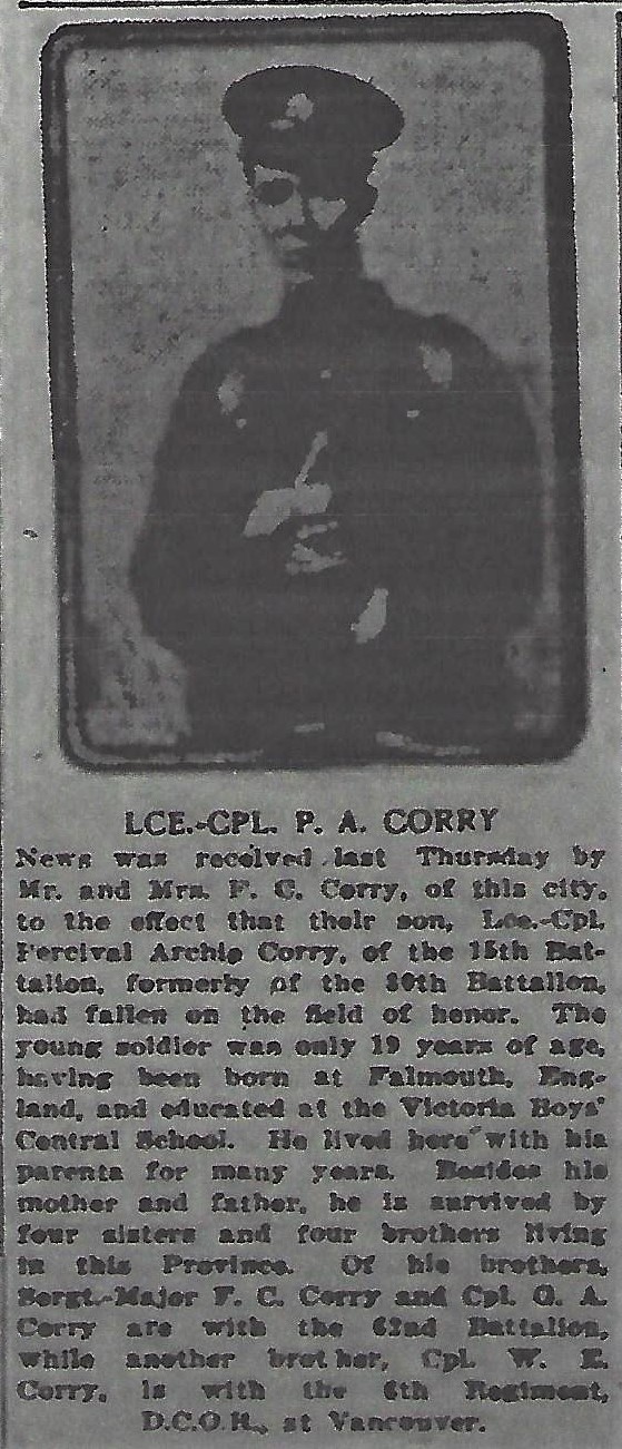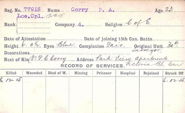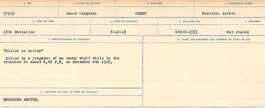 Digital gallery of Lance Corporal Percival Archie Corry