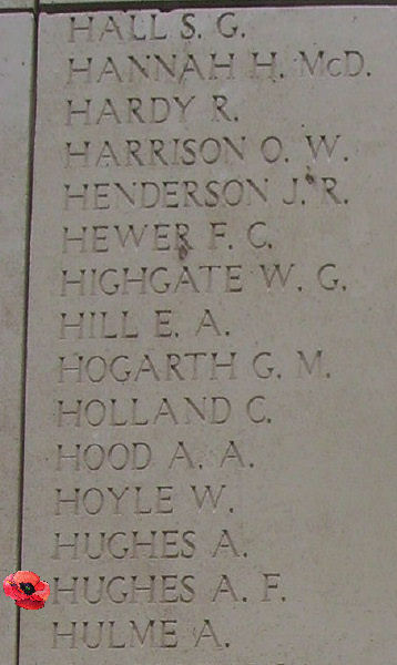 HERE ARE RECORDED NAMES OF OFFICERS AND MEN WHO FELL IN YPRES SALIENT BUT TO WHOM THE FORTUNE OF WAR DENIED THE KNOWN AND HONOURED BURIAL GIVEN TO THEIR COMRADES IN DEATH.