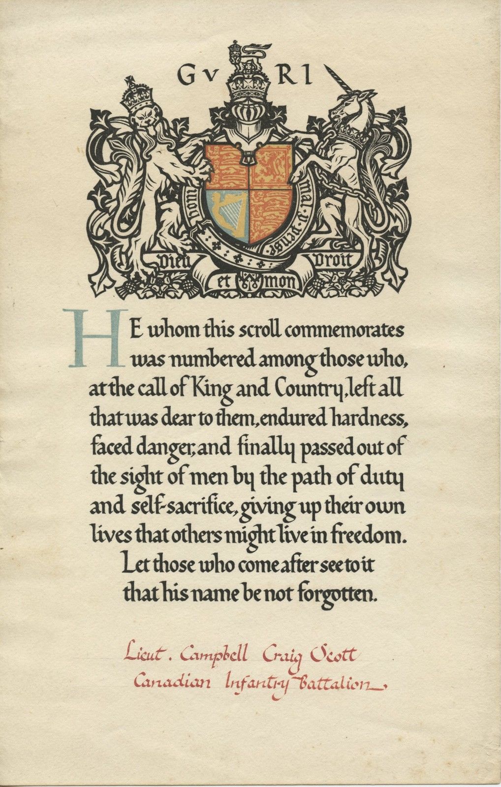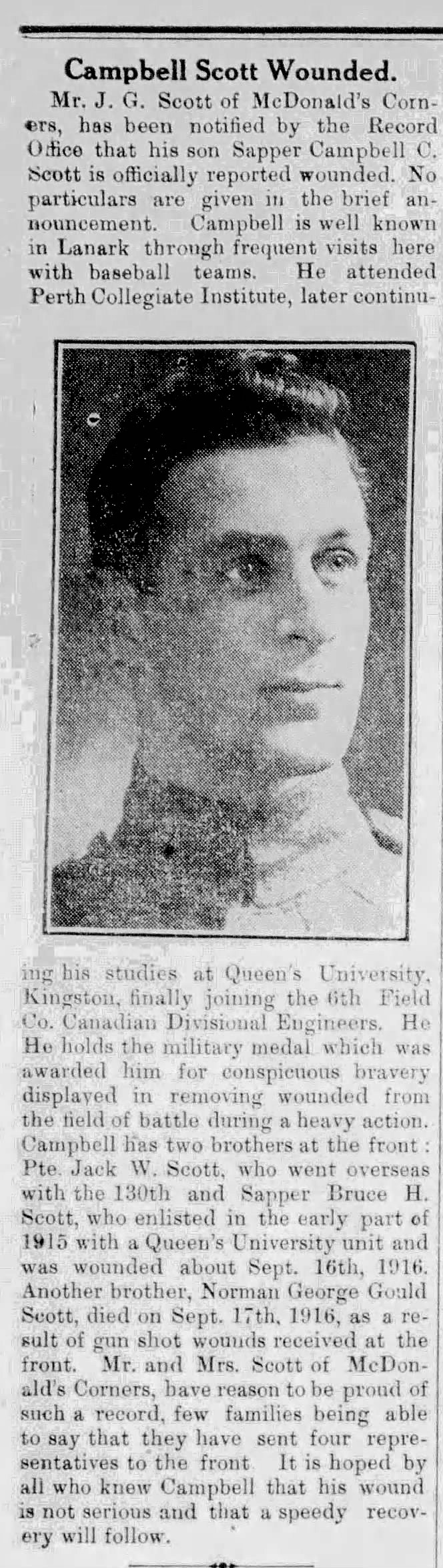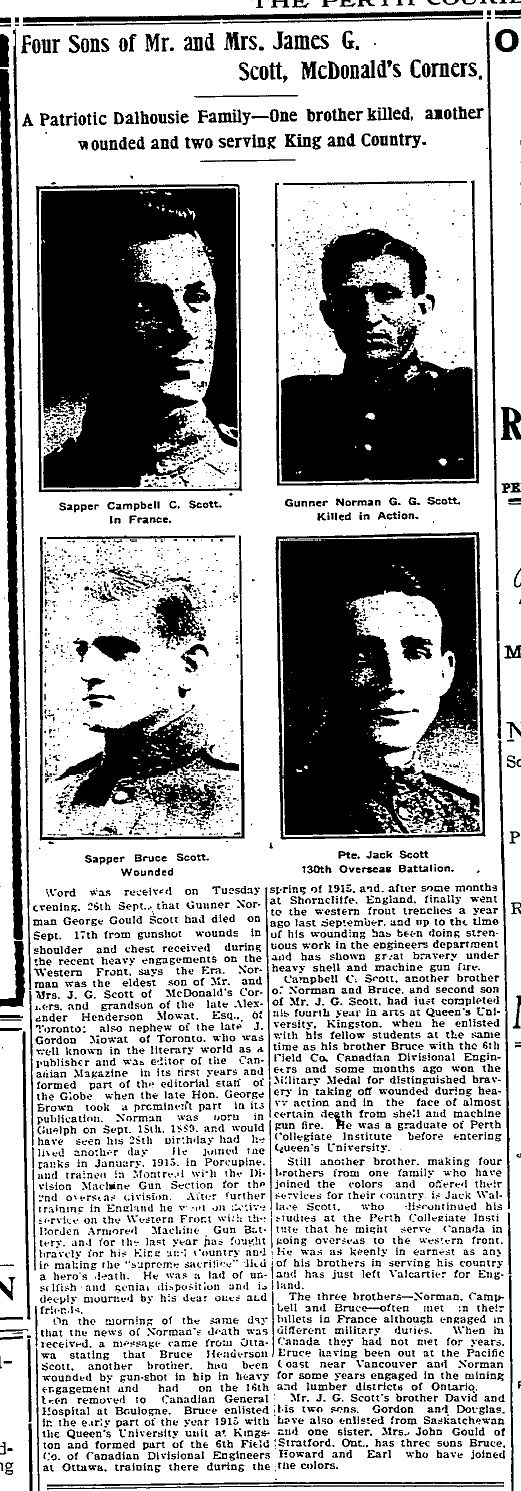 Brother of Private George Gould Scott, who died during service with the Canadian Machine Gun Corps.
