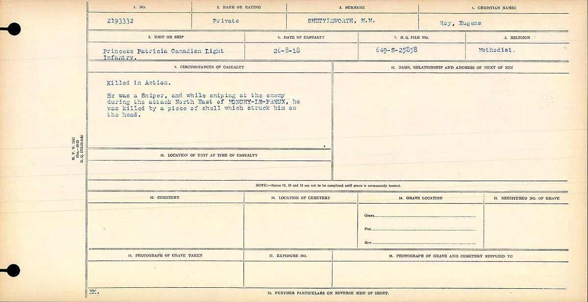 Digital gallery of Private Roy Eugene Shuttleworth