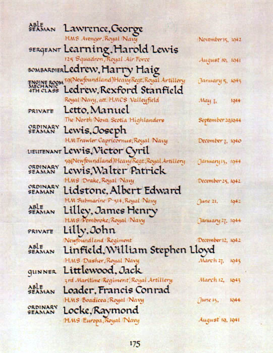 Page 175 of the Newfoundland Book of Remembrance.