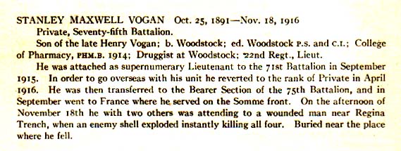 Brother of Second Lieutenant Lindsay Clarence Vogan who died on April 28, 1917 while serving with the Middlesex Regiment.