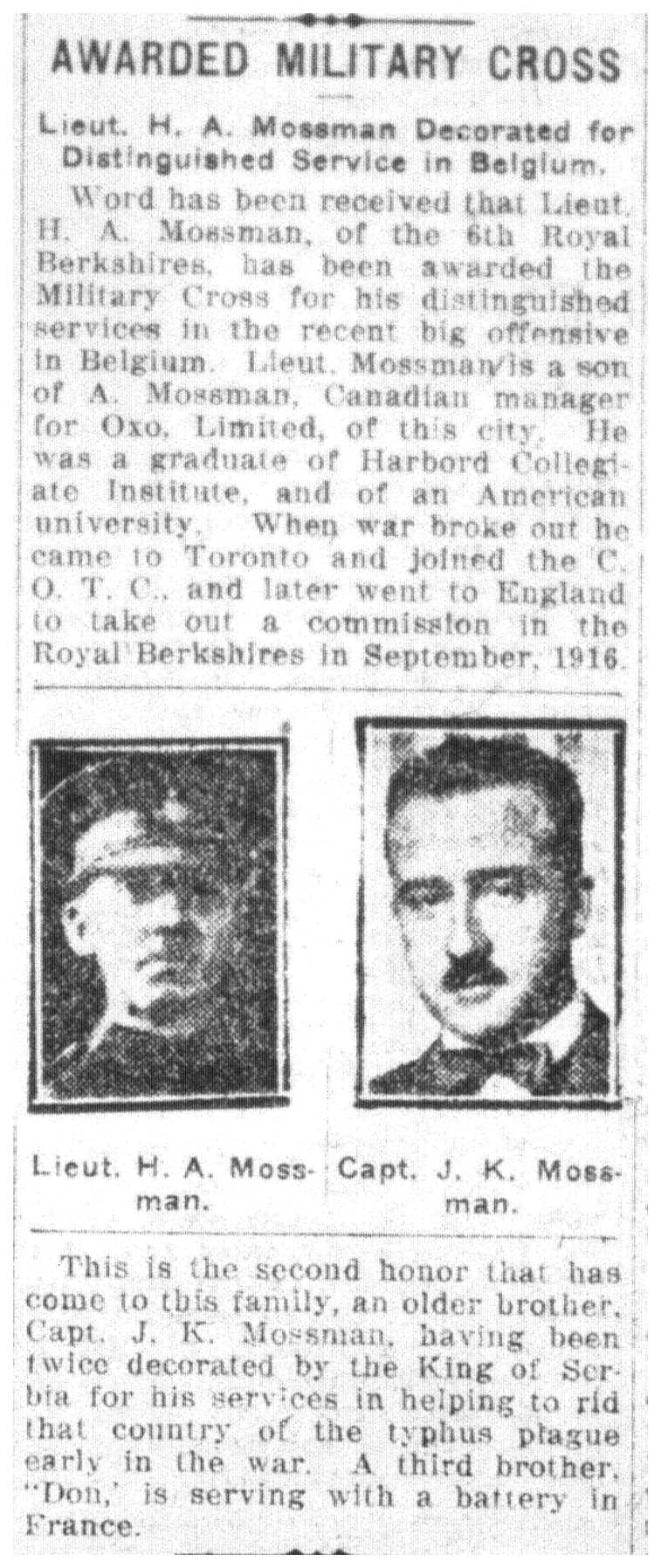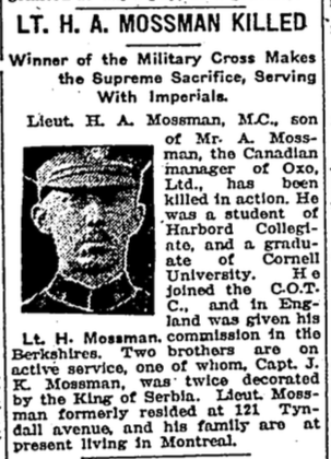 Digital gallery of Second Lieutenant Harold Alexander Mossman
