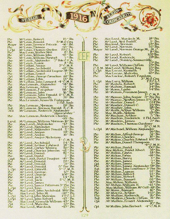 Page 129 of the First World War Book of Remembrance.