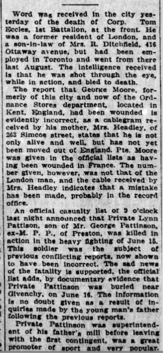 The dead are remembered to this day in a simple ceremony that takes place every evening at 8:00 p.m. All traffic through the gateway in either direction is halted, and two buglers (on special occasions four) move to the centre of the Hall and sound the Last Post. Two silver trumpets for use in the ceremony are a gift to the Ypres Last Post Committee by an officer of the Royal Canadian Artillery, who served with the 10th Battery, of St. Catharines, Ontario, in Ypres in April 1915."