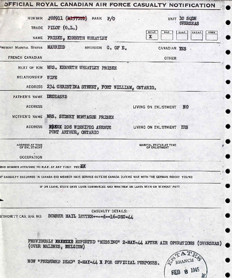 Brother of Petty Officer Sydney Robert Priske, who died during service with the Royal Canadian Navy.