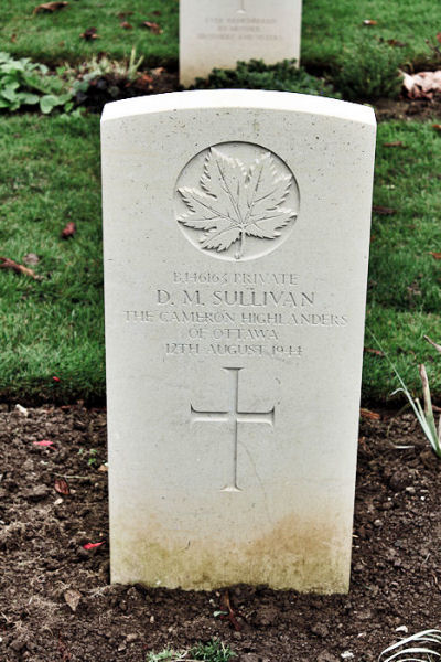 It was on the coast just to the north that the 3rd Canadian Division landed on 6th June 1944; on that day, 335 officers and men of that division were killed in action or died of wounds. In this cemetery are the graves of Canadians who gave their lives in the landings in Normandy and in the earlier stages of the subsequent campaign. Canadians who died during the final stages of the fighting in Normandy are buried in Bretteville-sur-Laize Canadian War Cemetery.