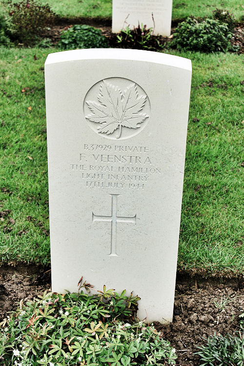 It was on the coast just to the north that the 3rd Canadian Division landed on 6th June 1944; on that day, 335 officers and men of that division were killed in action or died of wounds. In this cemetery are the graves of Canadians who gave their lives in the landings in Normandy and in the earlier stages of the subsequent campaign. Canadians who died during the final stages of the fighting in Normandy are buried in Bretteville-sur-Laize Canadian War Cemetery.