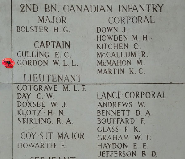 HERE ARE RECORDED NAMES OF OFFICERS AND MEN WHO FELL IN YPRES SALIENT BUT TO WHOM THE FORTUNE OF WAR DENIED THE KNOWN AND HONOURED BURIAL GIVEN TO THEIR COMRADES IN DEATH.