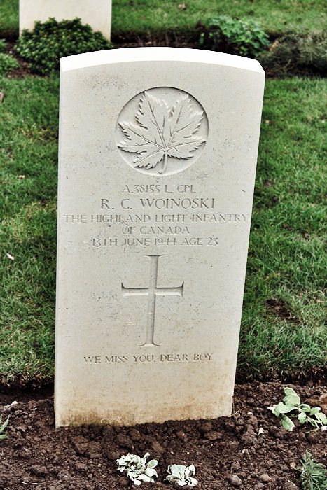It was on the coast just to the north that the 3rd Canadian Division landed on 6th June 1944; on that day, 335 officers and men of that division were killed in action or died of wounds. In this cemetery are the graves of Canadians who gave their lives in the landings in Normandy and in the earlier stages of the subsequent campaign. Canadians who died during the final stages of the fighting in Normandy are buried in Bretteville-sur-Laize Canadian War Cemetery.