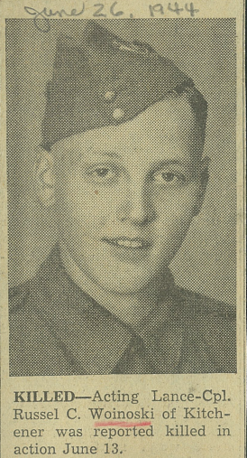 Digital gallery of Lance Corporal Russel Clarence Woinoski
