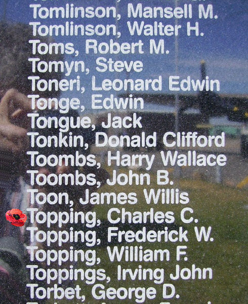 IN THIS CLOISTER ARE RECORDED THE NAMES OF TWENTY THOUSAND AIRMEN WHO HAVE NO KNOWN GRAVE. THEY DIED FOR FREEDOM IN RAID AND SORTIE OVER THE BRITISH ISLES AND THE LANDS AND SEAS OF NORTHERN AND WESTERN EUROPE