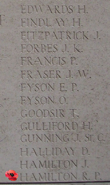 HERE ARE RECORDED NAMES OF OFFICERS AND MEN WHO FELL IN YPRES SALIENT BUT TO WHOM THE FORTUNE OF WAR DENIED THE KNOWN AND HONOURED BURIAL GIVEN TO THEIR COMRADES IN DEATH.