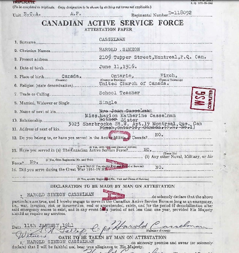 Digital gallery of Lieutenant Harold Simeon Casselman