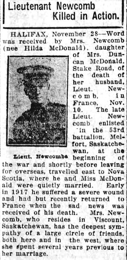 Son of John and Josephine Newcomb; husband of Hilda Newcomb, of Winnipeg.