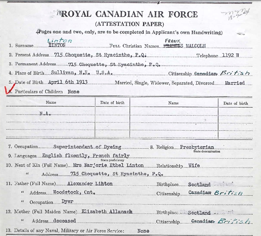 Digital gallery of Pilot Officer Francis Malcolm Linton