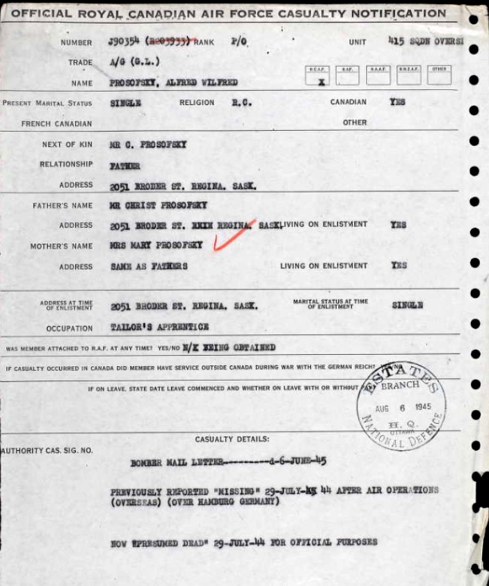 Digital gallery of Pilot Officer Alfred Wilfred Prosofsky