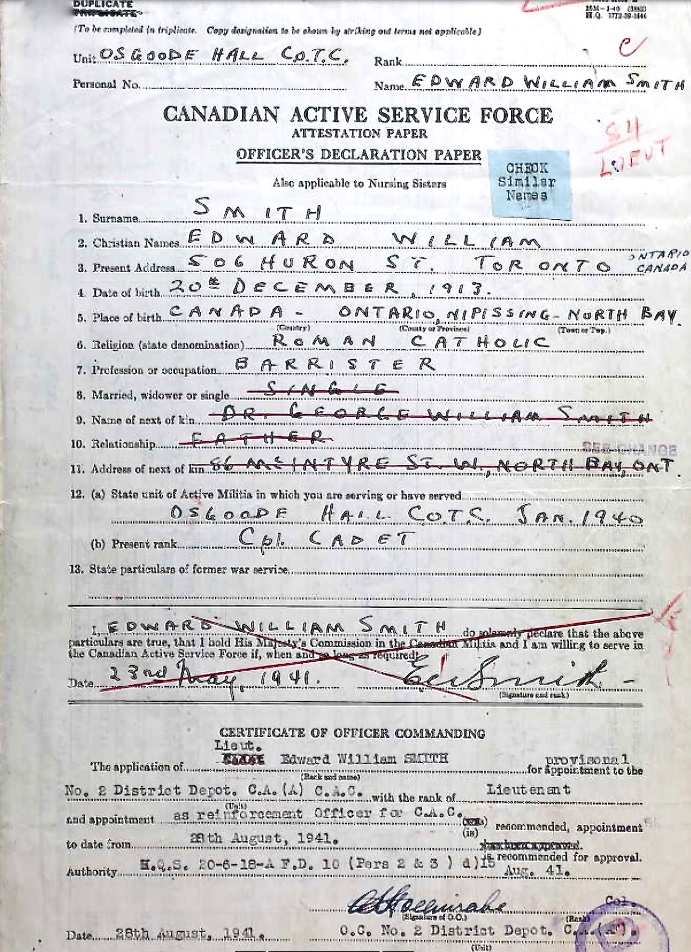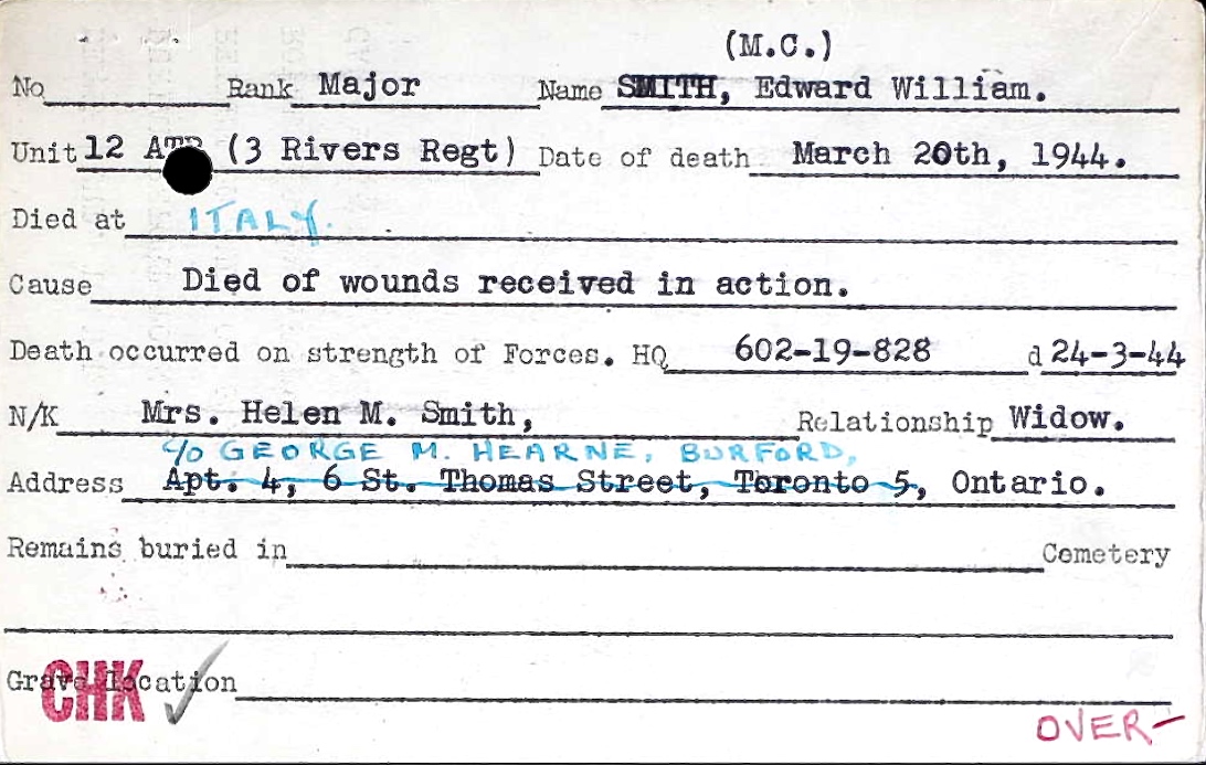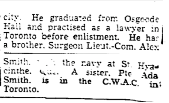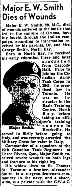 Son of Dr. George W. Smith and Eva Smith; husband of Helen M. Smith, of Toronto, Ontario.