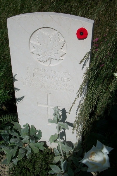 Son of Private Adélard Boucher, serial number 3166522, Canadian Machine Gun Company, and Albertine Blais. He fought in France before being demobilized on 22 June 1919, in Montréal, Québec. He was awarded the British War Medal and the Victory Medal.