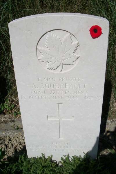 Enrolled at recruiting centre number 55 in Rimouski, Québec, he was given the service number E-620542. Transferred to the Royal 22e Régiment on 22 October 1941, he was given the service number E-6160. He fought in Sicily, at Caltagirone, Grammichele, Piazza-Armenia and Monte delle Forme, all in Italy. Seriously wounded by a mortar shell on 18 September 1944 at San Martino, he died of his wounds on the 19th at the 5th Canadian Field Ambulance near San Martino. He was buried in Pesaro the same day in the Allied cemetery, row D. After the war, on 18 June 1945, his body was exhumed and laid to rest in Gradara Canadian War Cemetery, Italy.