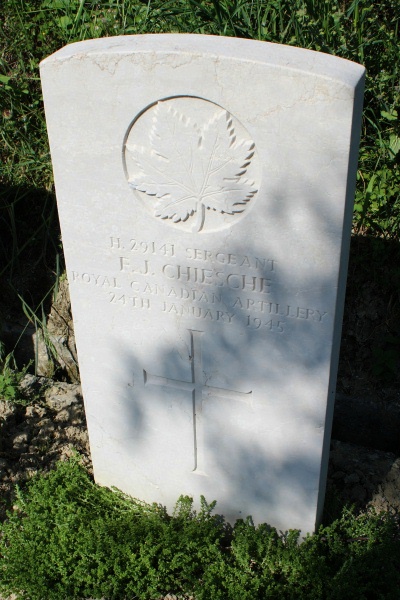The cemetery occupies a unique position on a hillside which was terraced for agriculture, each row of graves taking up one terrace. The site for the cemetery was chosen in November 1944 and it contains the graves of casualties incurred during the advance from Ancona to Rimini (which broke the Gothic Line) and in the heavy fighting around Rimini, which was taken by the Allies on 21st September 1944.