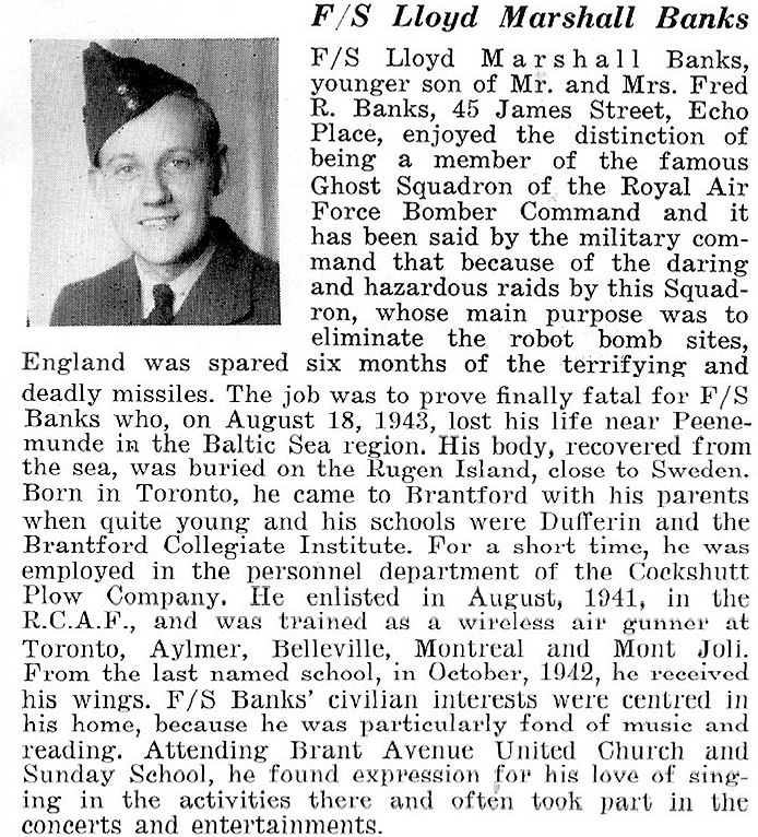 Son of Frederick Richard and Florence Banks, of Brantford, Ontario, Canada.