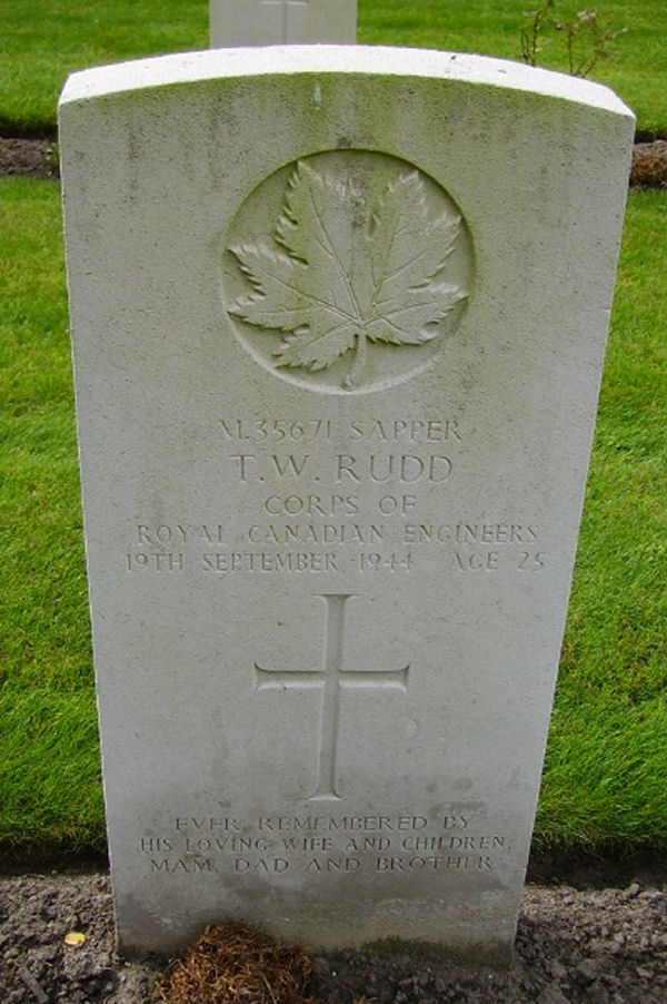 Brother of Sergeant Francis Rudd, Royal Canadian Air Force, killed in action 10 October 1943 and Albert John (Jack). Husband of Walburga Rudd, of Erskine, Alberta.