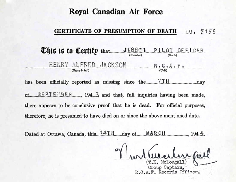 Digital gallery of Pilot Officer Henry Alfred Jackson