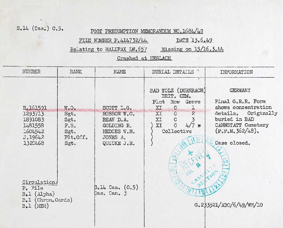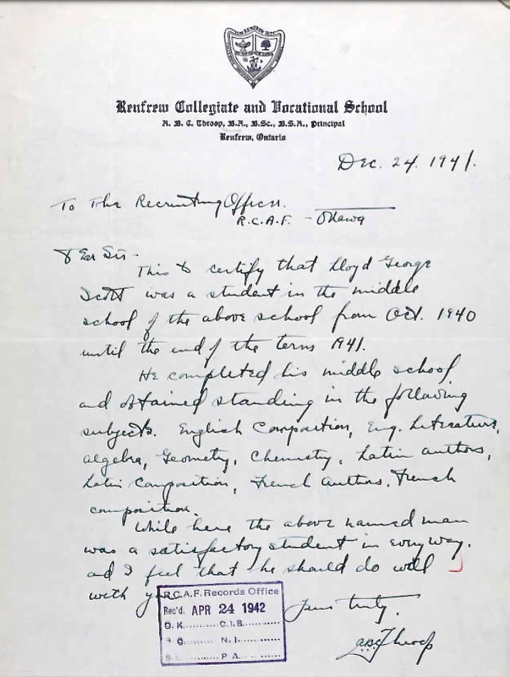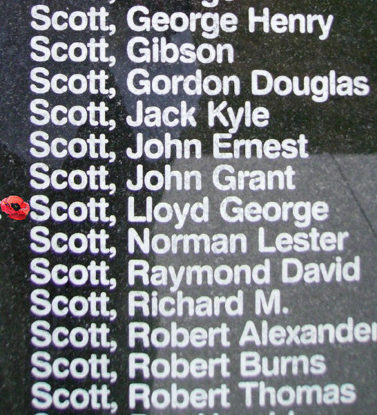 Son of Joshua and Millie Mabel (nee Pretty) Scott of Renfrew, Ontario. Brother of James Oswald, Mary Agnes, Grace Isobel, Mabel Irene and Marjorie Laney. Warrant Officer, Class 2, Lloyd Scott shares a cemetery with Sergeant Russell James and Flight Sergeant William Reynolds, two other lads from Carleton Place.