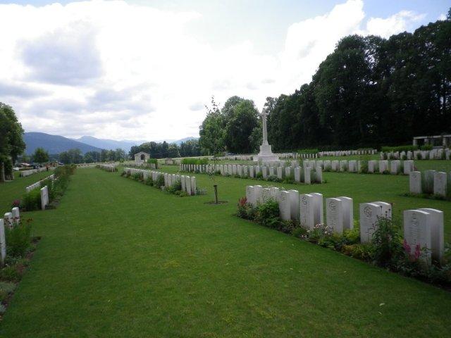 Durnbach is a village 16 kilometres east of Bad Tolz, a town 48 kilometres south of Munich. Durnbach War Cemetery is 3 kilometres north of the village Gmund am Tegernsee. Using the A8 from Munich, turn off at the junction Holzkirchen, taking the 318 road in the direction of Gmund am Tegernsee. At the crossroads with the 472, turn left in the direction of Miesbach. The cemetery is situated approximately 500 metres on the left from the 318/472 crossroads.