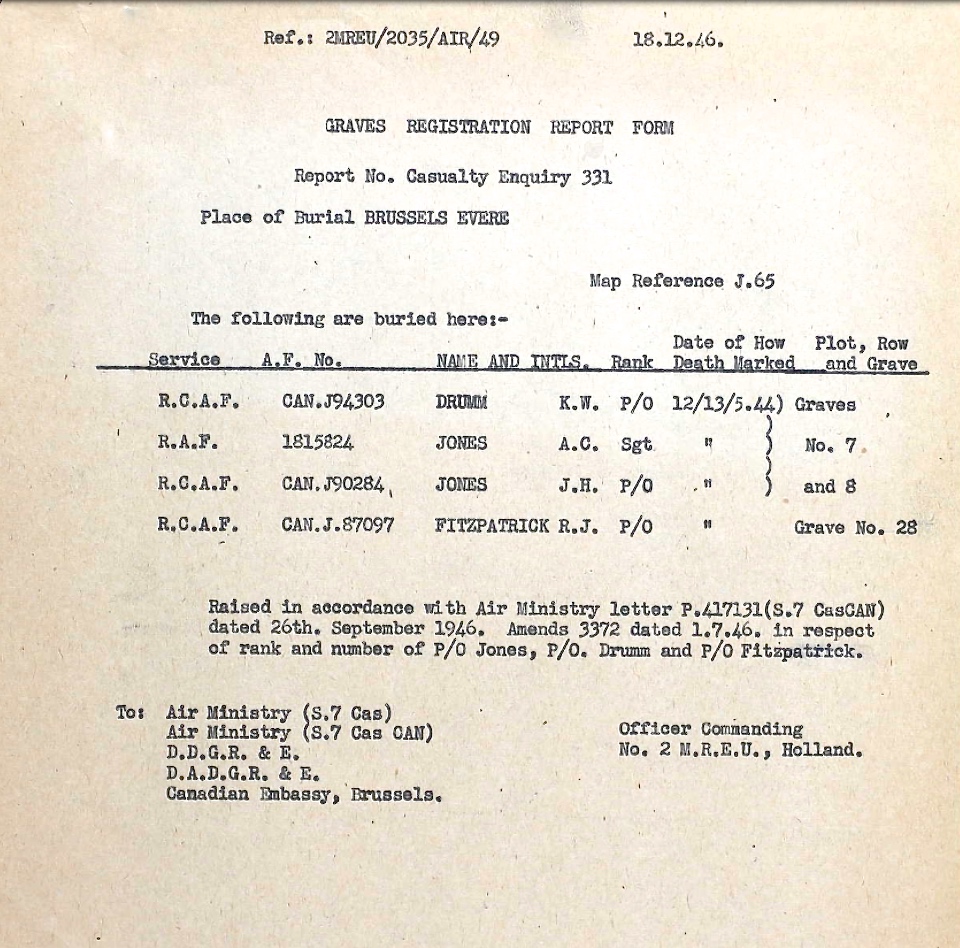 Canadian crew members Flying Officer Robert J. Fitzpatrick, J-87097, Sergeant James H. Jones, J-90284 and Sergeant Kenneth W. Drumm, J-94303 of the 426 Squadron Halifax Bomber No. 883 "OE-E" shot down on 13 May 1944 by a German Messerschmitt over Londerzeel, Belgium are commemorated on a plaque located on the wall of the town church.