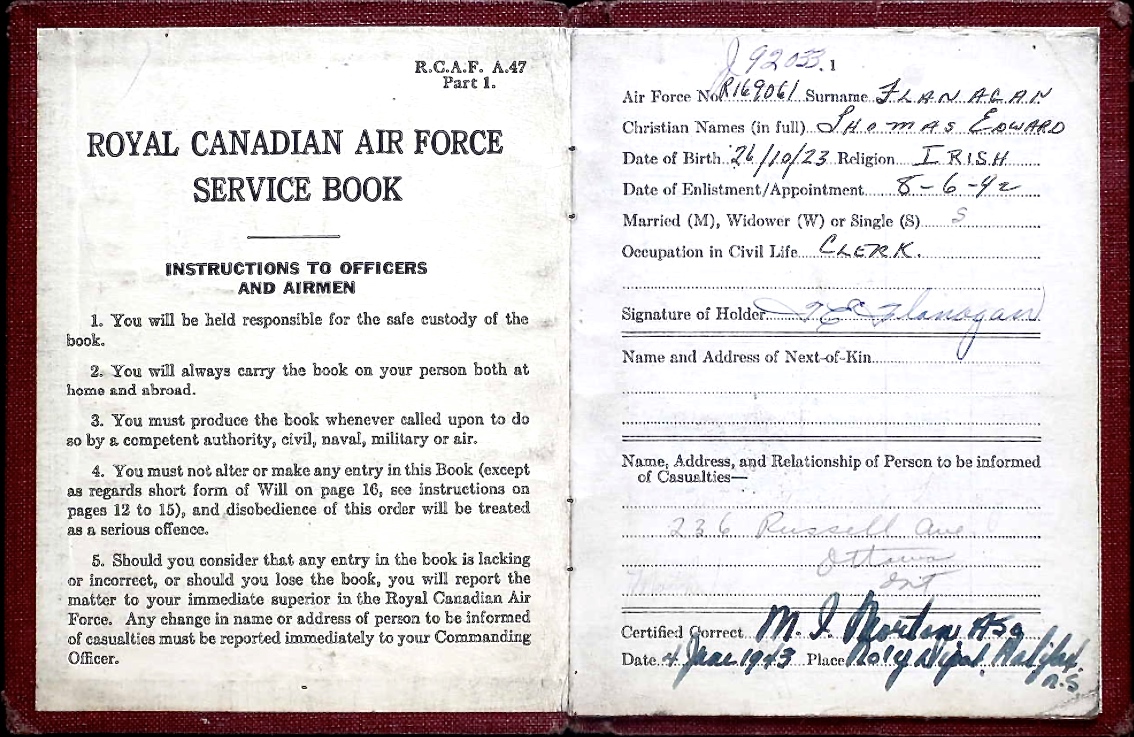 Son of Edward James Flanagan and Minnie Flanagan, of Ottawa, Ontario. Nephew of Emma Hollis, of Ottawa.
