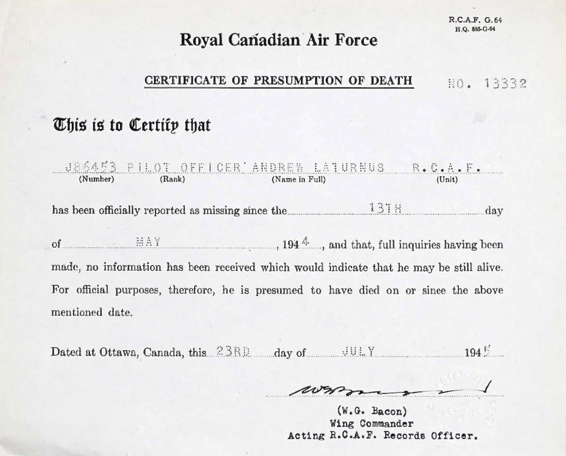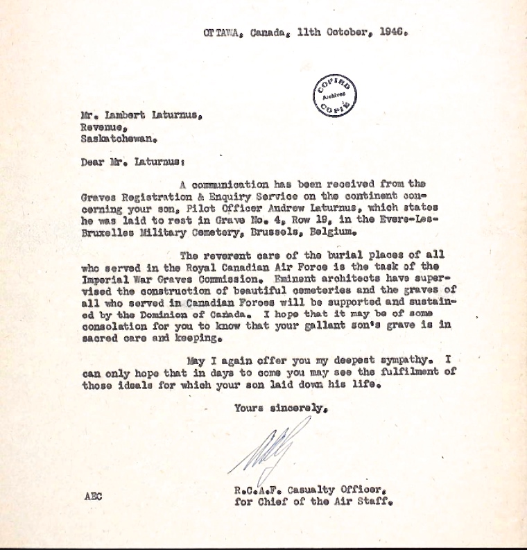 Brother of Private Edward Laturnus, who died while serving with the South Saskatchewan Regiment.