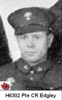 He served in Manitoba, Jamaica with Y Force in B Company of 11 Platoon, Hong Kong with C Force. He had 831 days of service, including 55 overseas. To commemorate his sacrifice, the Manitoba government named Edgley Lake located northeast of Lac Du Bonnet in his honor in 1973.
