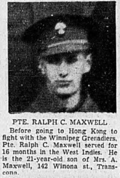 Brother of Seaman James A. Maxwell, Royal Canadian Naval Volunteer Reserve, and airman Campbell E. Maxwell, Royal Canadian Air Force. They survived the war.