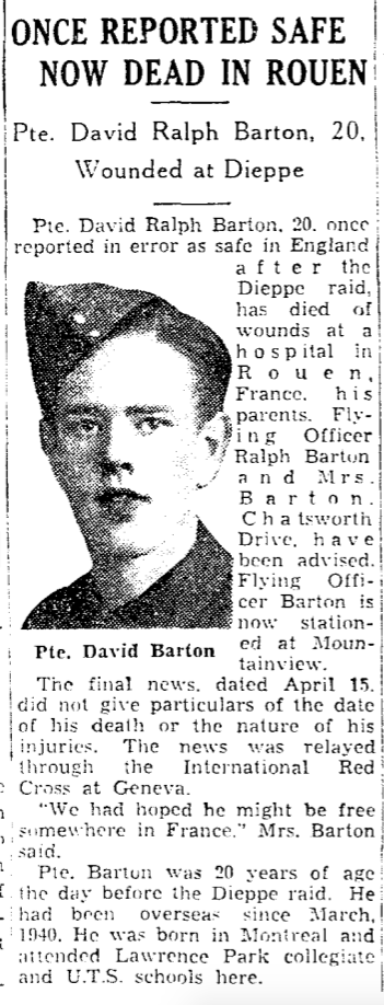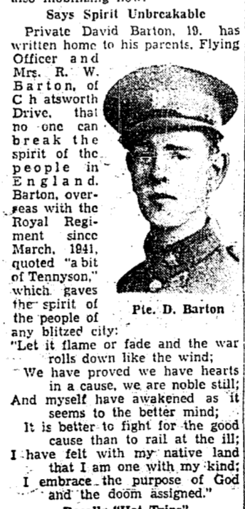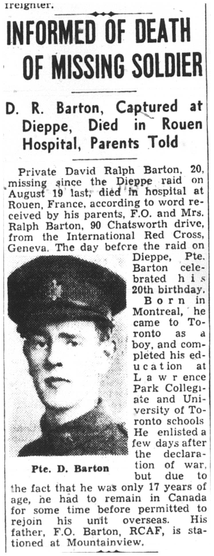 Son of Ralph William and Jessie Hilda Barton, of Toronto, Ontario.