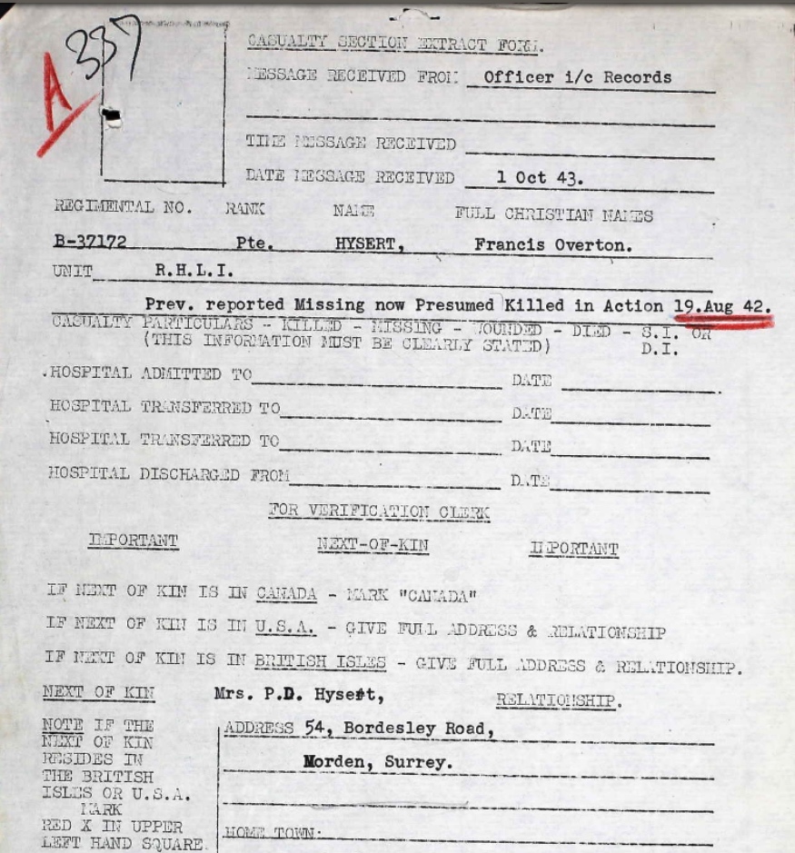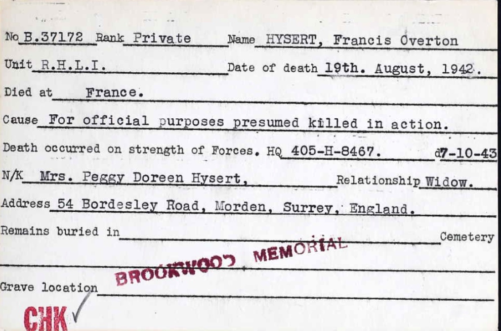 The names of over 200 Canadians are remembered on the Brookwood Memorial. Some perished in ships that were sunken in waters outside the territorial limits of any major campaign; some were lost overboard; some died from various causes on hospital ships or troop transports and were given burial at sea. Also commemorated are those who died during the campaign in Norway in 1940, and in raids on enemy-occupied territory in Europe, including the costly operation against Dieppe in August 1942.
