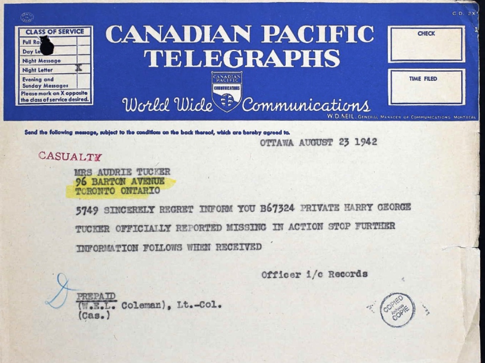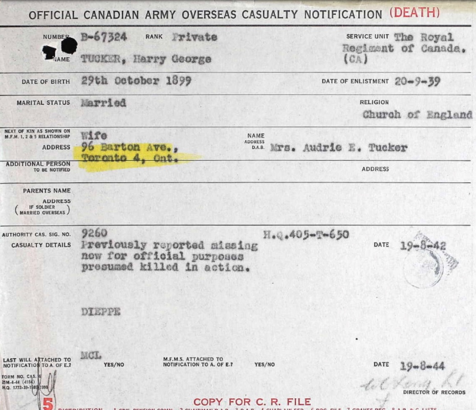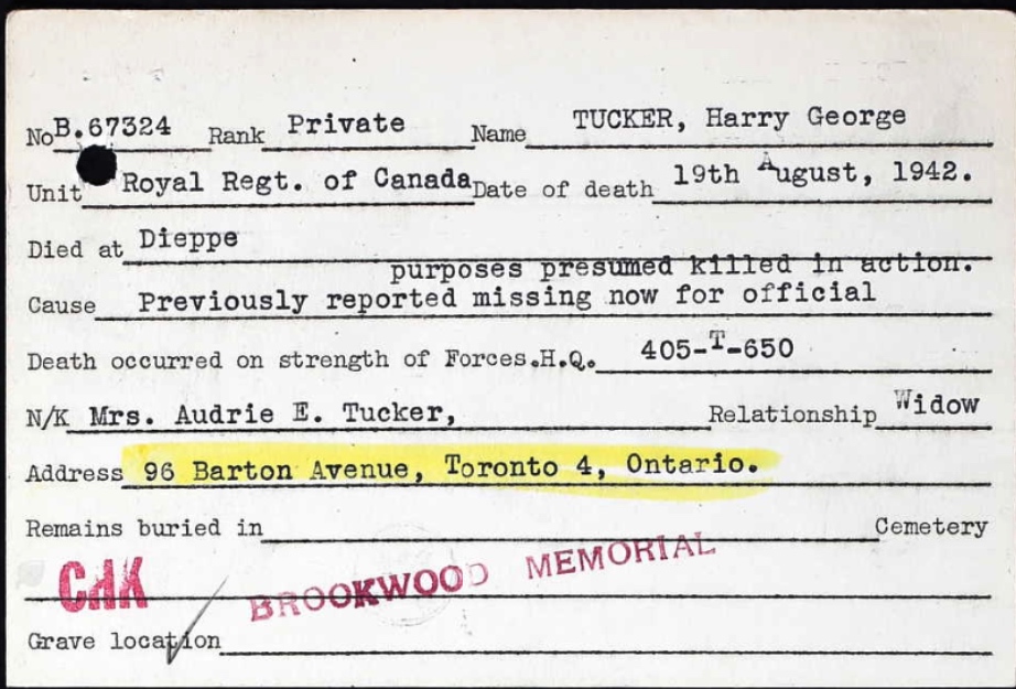 Brother of Gordon Charles Tucker who died on March 30, 1916 while serving with the Canadian Infantry (Central Ontario) Regiment.