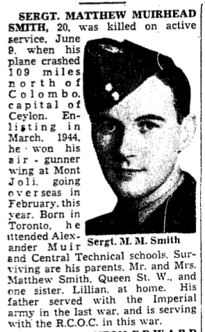Son of Matthew Anderson Smith and Jessie Craig Smith, of Toronto, Ontario, Canada.
