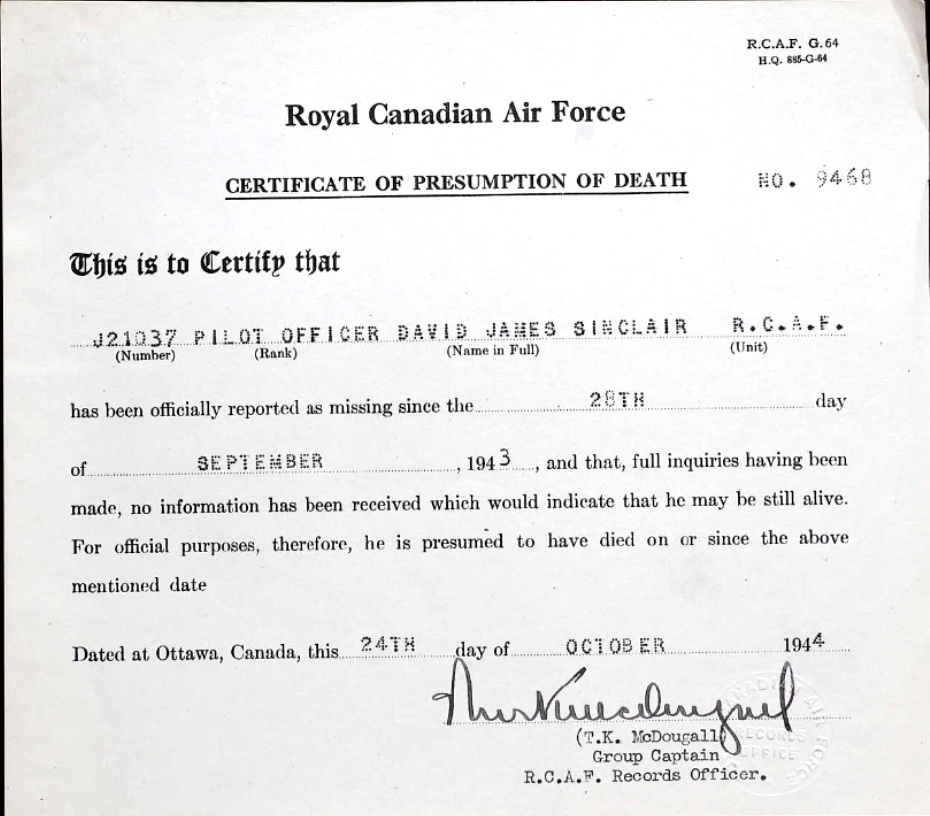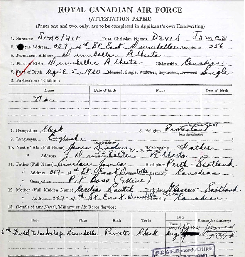 Son of James and Cecilia Sinclair, of Drumheller, Alberta.
