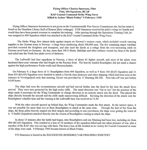 The War Graves plot is maintained by the Municipality of Haugesund and the Cross of Sacrifice stands in a central position. The plot contains 44 graves, 9 of the Royal Canadian Air Force. The majority of the graves were concentrated here at the end of hostilities from nine out-lying places around this area.