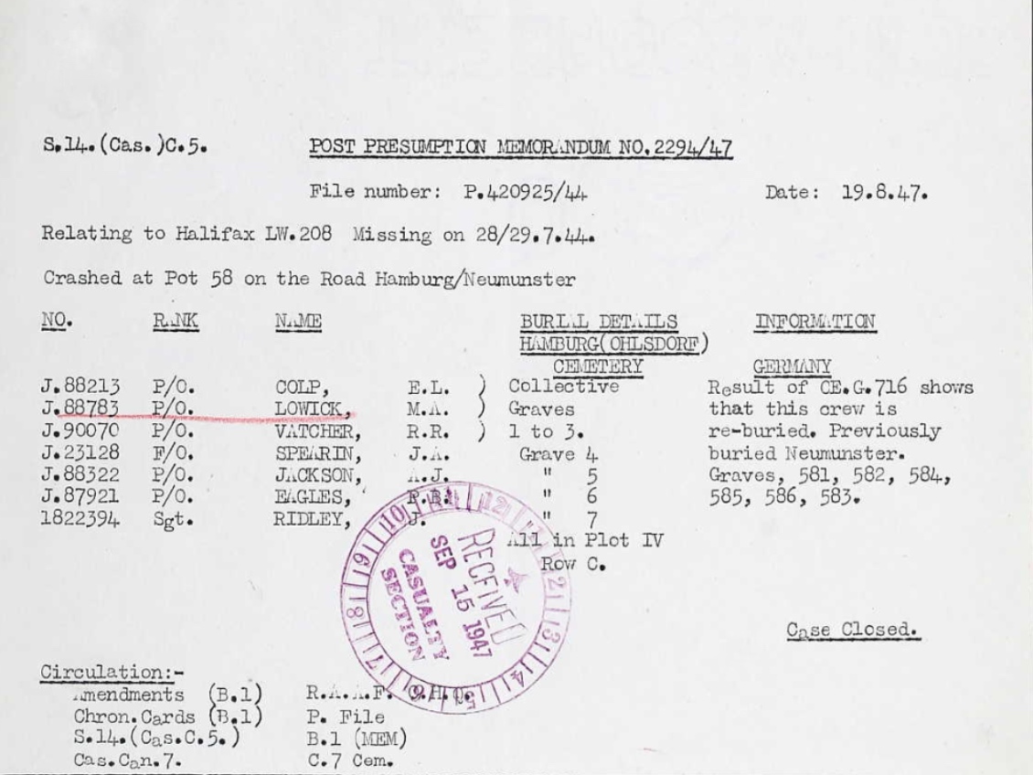 Digital gallery of Pilot Officer Morton Albert Lowick